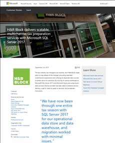 The tax industry is continually changing. H&R Block stays ahead of those changes at every stage to provide seamless multichannel experiences. The company started using Azure back in 2019 by moving various workloads to Microsoft SQL Server 2017 and Azure and using Azure data services. As a result, the tax provider was able to enhance service delivery, scale to meet peaks in demand, and accelerate innovation. Read more.